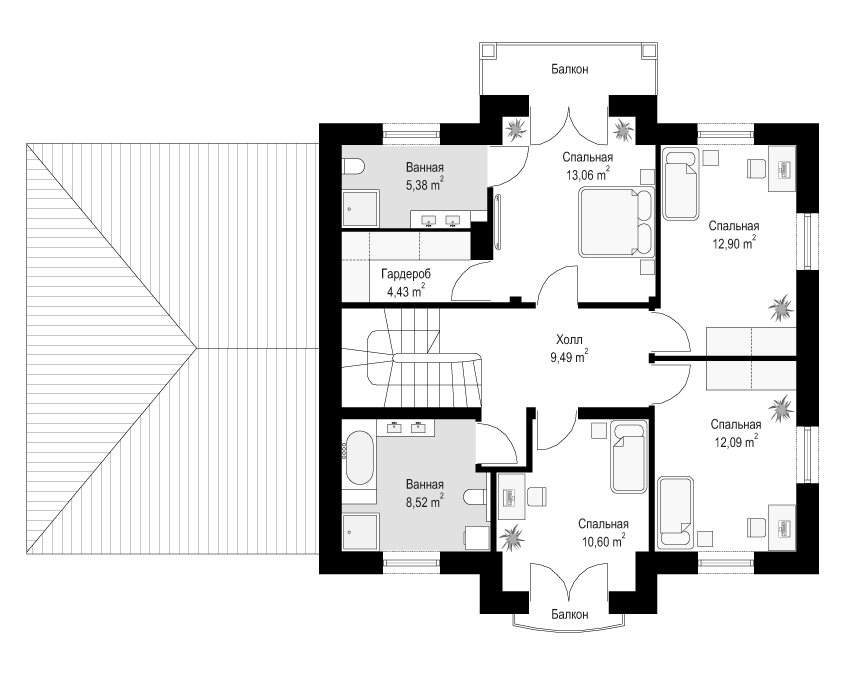 трёхмерные модели конструкций стен, перекрытий и стропильной системы;
