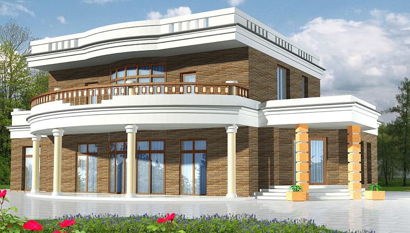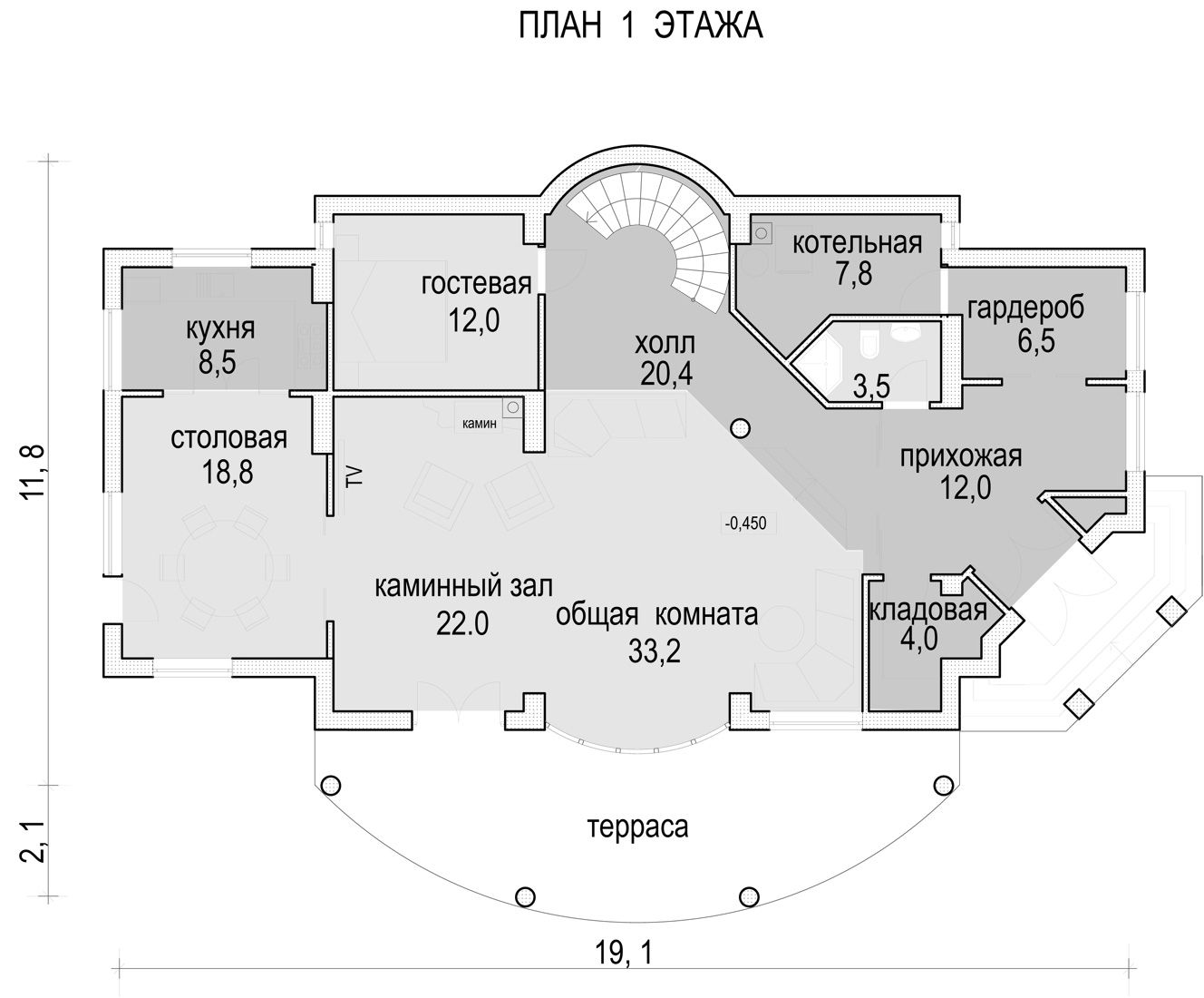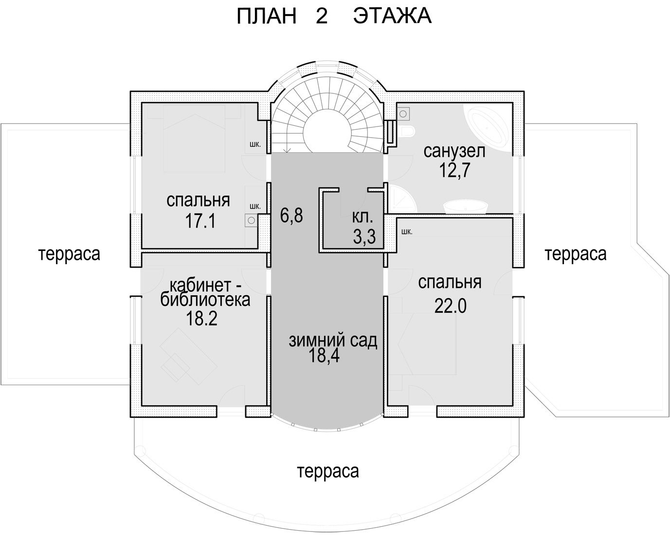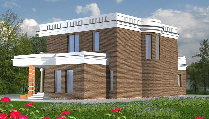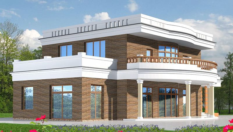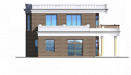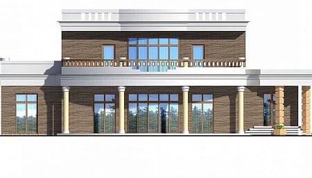Проект двухэтажного пятикомнатного каркасного жилого дома 19,1 м х 13,9 м в классическом стиле общей площадью 249 кв.м с террасой, c четырьмя спальнями, с двумя санузлами, с камином.
