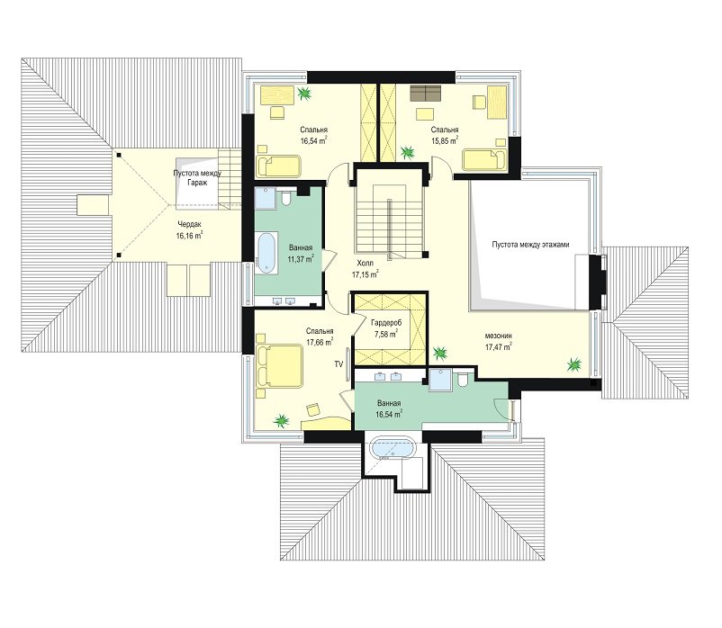 трёхмерные модели конструкций стен, перекрытий и стропильной системы;