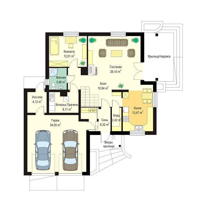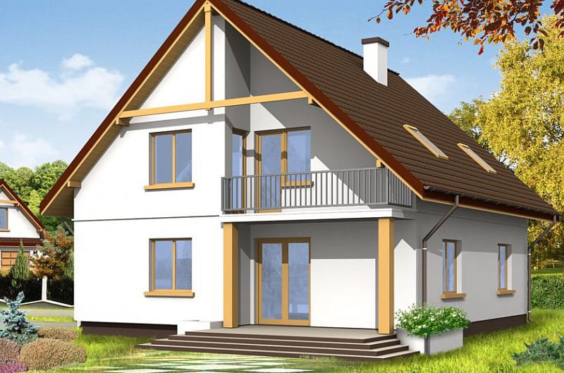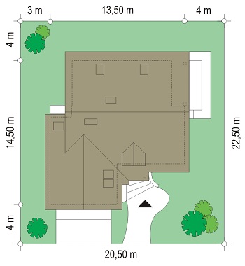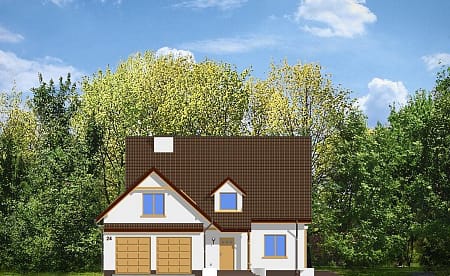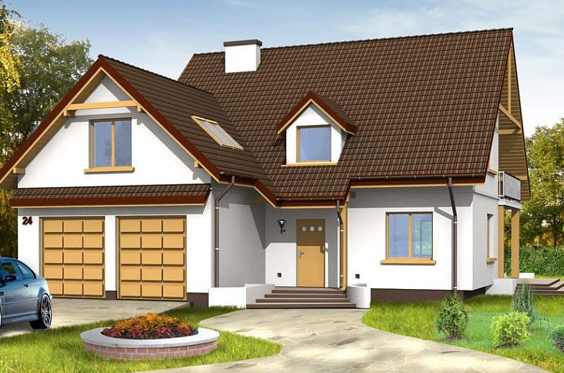 Проект двухэтажного шестикомнатного каркасного жилого дома 14,5 м х 13,5 м в классическом стиле общей площадью 266 кв.м с мансардным этажом, с гаражом для двух автомобилей, с террасой, с пятью спальнями, с двумя санузлами, с камином.